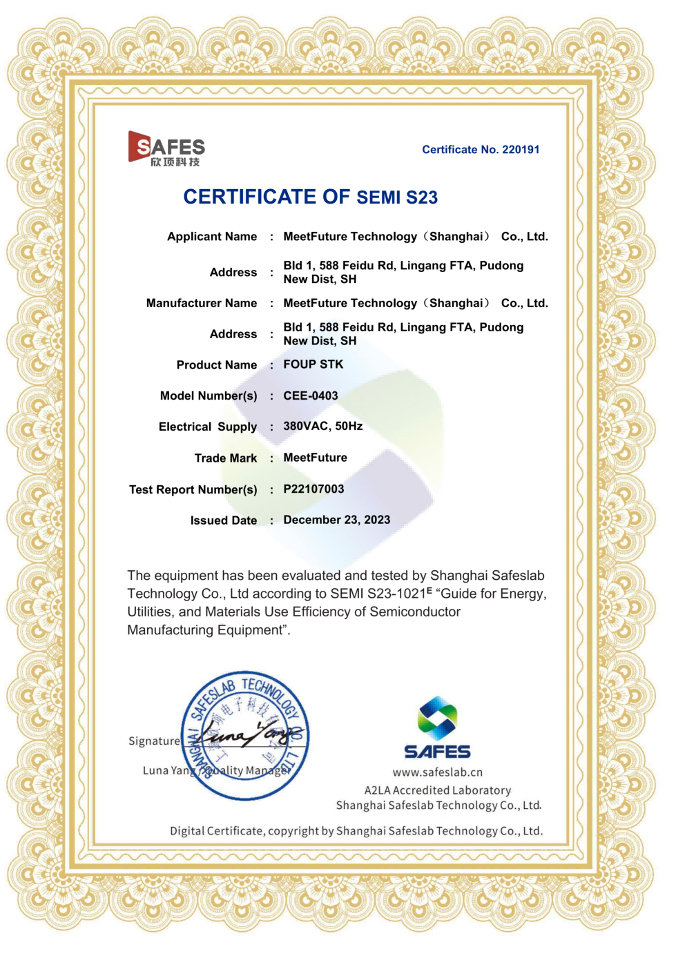 Since 2018, MiFET has obtained International Organization for Standardization (ISO) certifications for Quality Management System (ISO 9001), Environmental Management System (ISO 14001) and Occupational Health and Safety Management System (ISO 45001). In the field of AMHS product technology system, we follow the standard communication protocols for semiconductor equipment, including SEMI E37, E82, E30, E84, E10, etc., so that it is easy to connect to semiconductor fab MES system to realize data interaction.